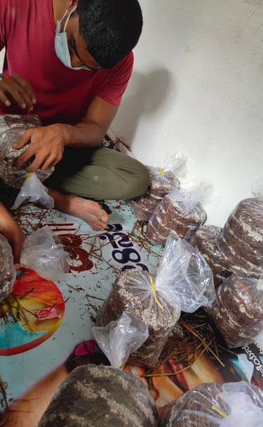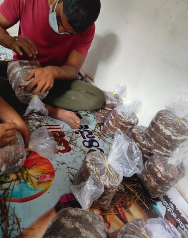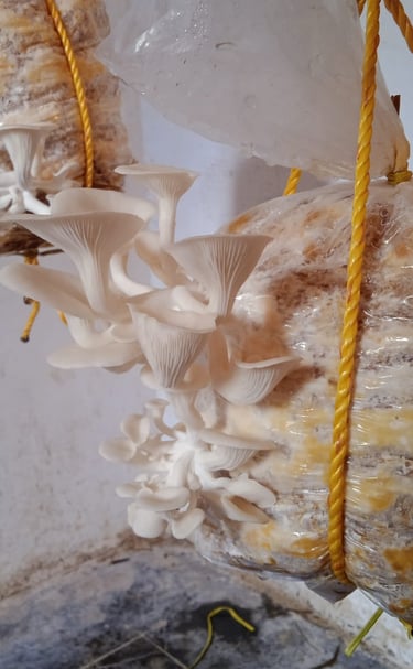 We began with button mushroom cultivation, but early challenges taught us valuable lessons in resilience and adaptation. These experiences guided us toward oyster mushrooms, a variety perfectly suited to our environment, resources, and mission. Today, oyster mushroom cultivation is at the heart of our growth, forming the foundation of our organic and sustainable product line.